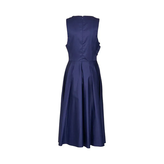 Elisabetta Franchi | Luxe Katoenen Midi Jurk met Ronde Hals — Marineblauw